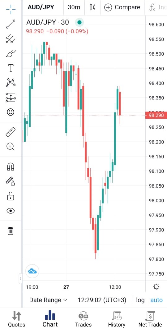From the chart tab, traders will find useful indicators they can use in the technical analysis and studies of market movement, also there is comparison functionality where they could compare any symbol chart with another.